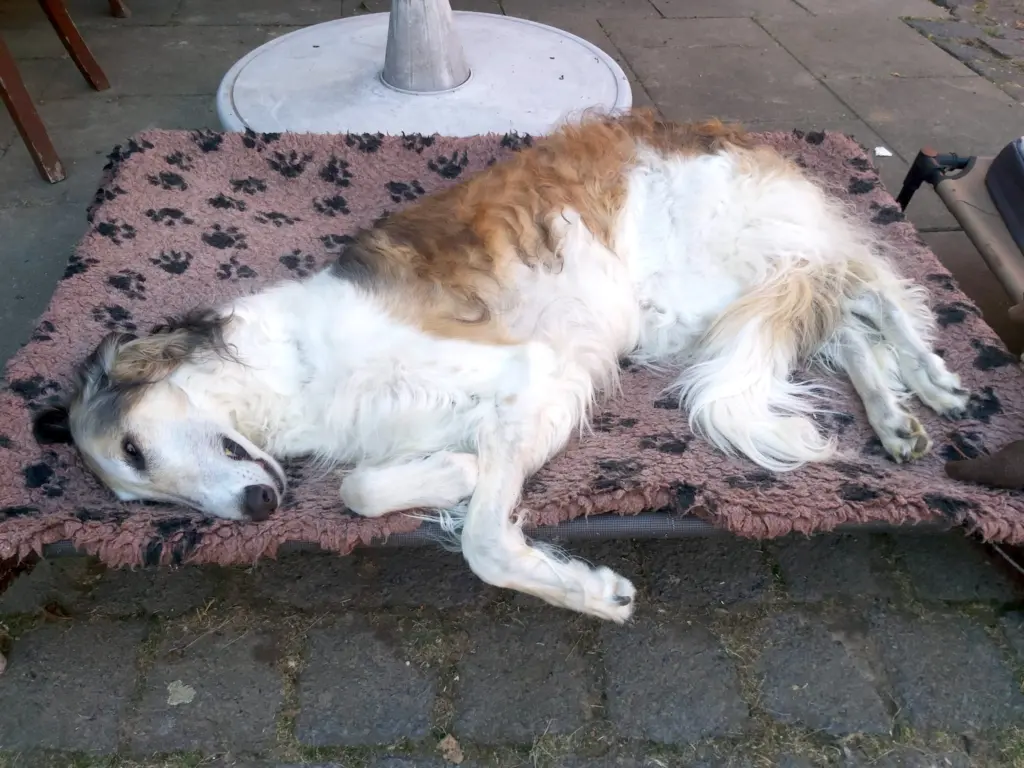 Heute hatten wir charmanten Besuch: Zoi’s Beau Tristen, ein junger Rüde von Julia und Mario Fogel, machte Station bei Rasswet’s Barsois/ Marion Wille. Mit seinen anderthalb Jahren ist er voller Elan, jugendlicher Neugier – und offenbar auch romantischer Vorstellungen.